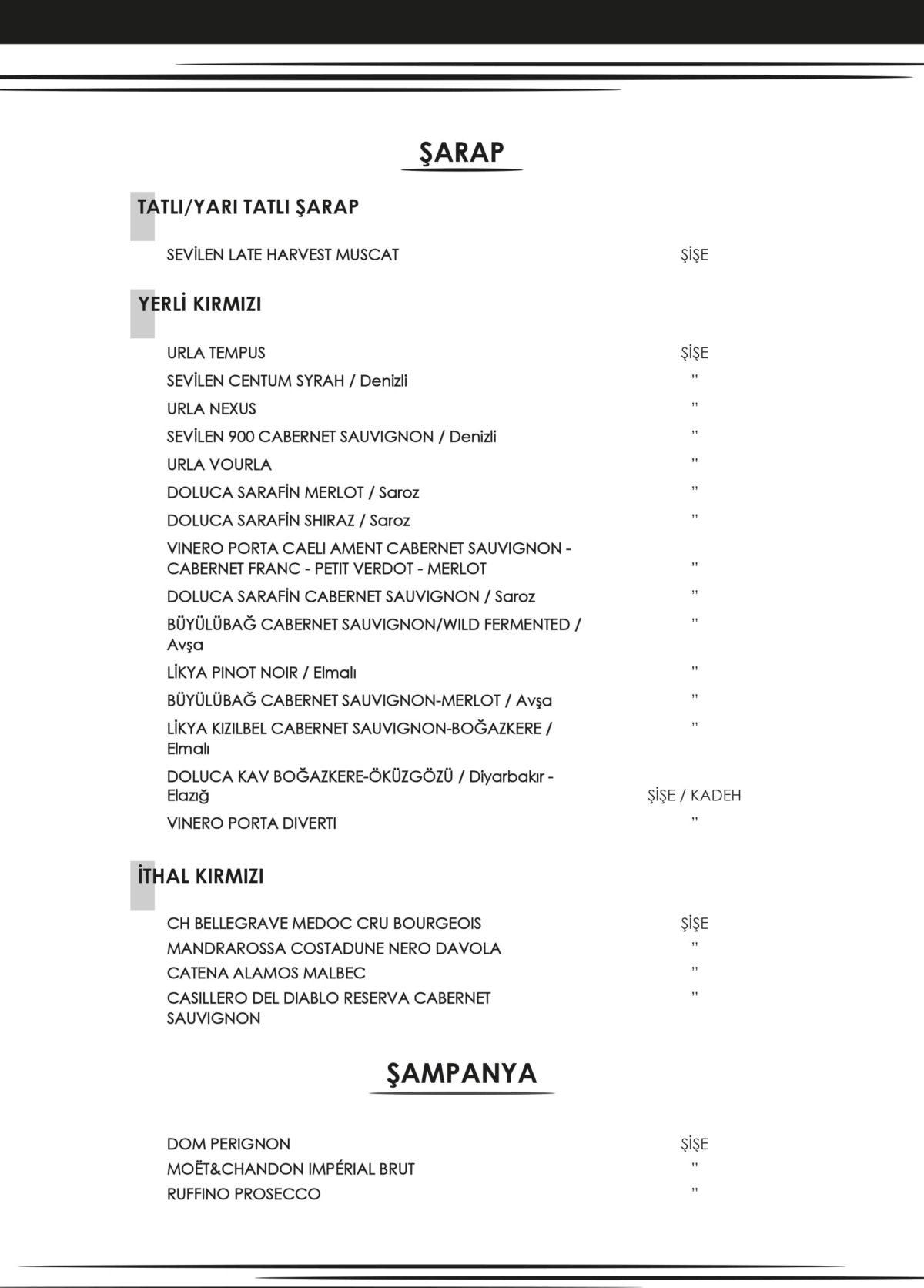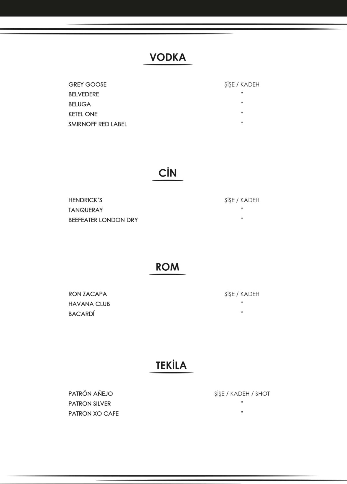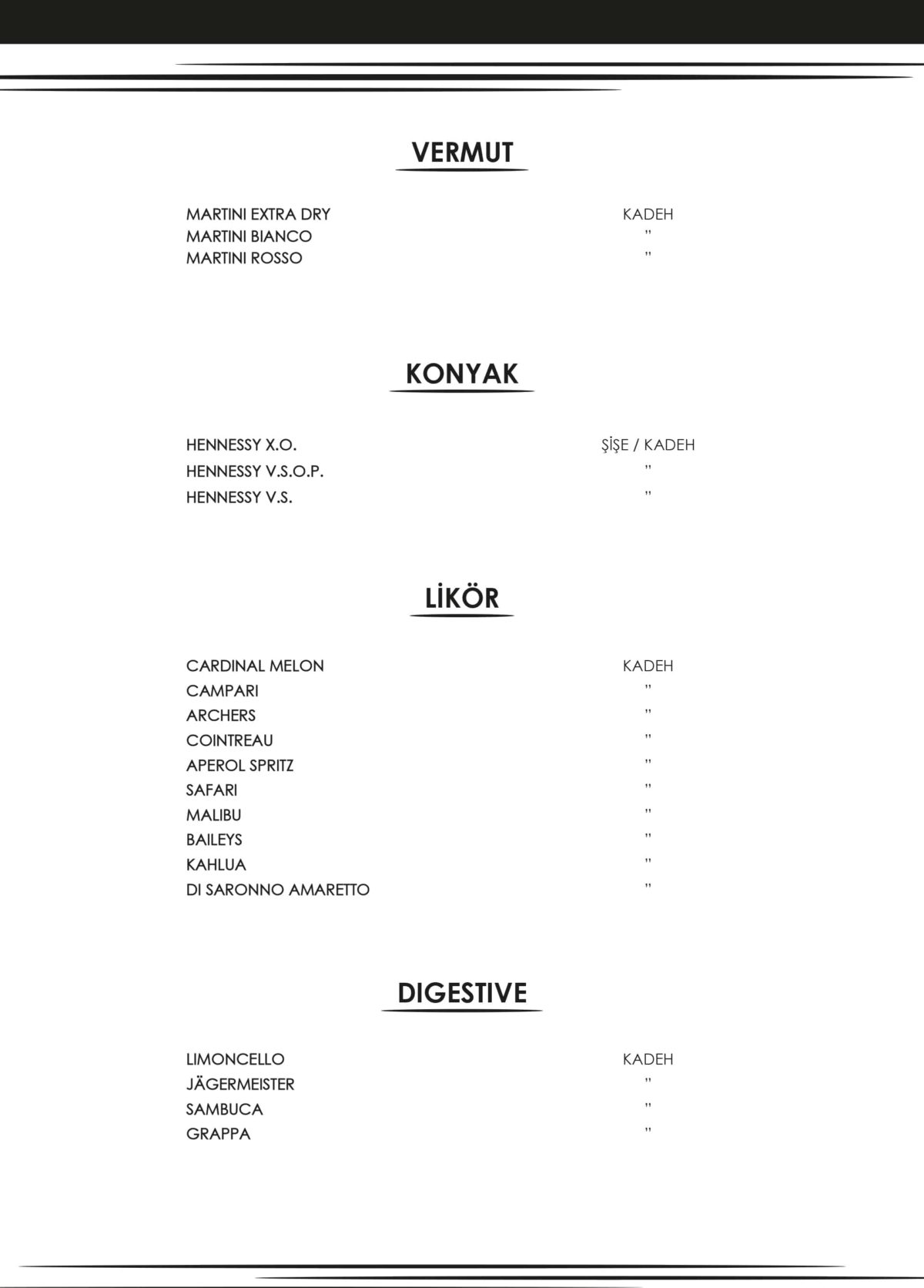 İÇKİ MENÜSÜ